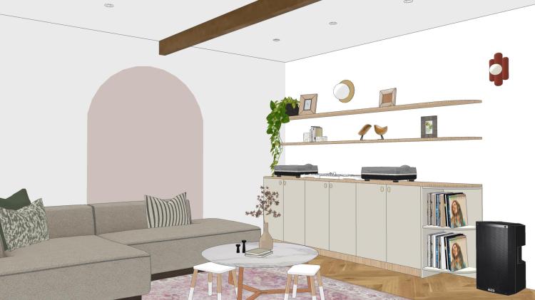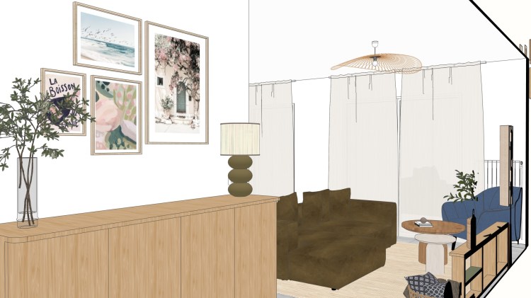 Projet à distance : Aménagement et décoration d’une pièce de vie et d’une cuisine dans un appartement en Suisse (2024)